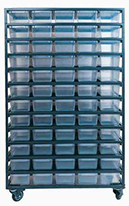 Стеллаж с пластиковыми контейнерами