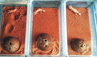 Эублефары лучше растут при индивидуальном содержании в контейнерах (Rich, 1995), а у молодых особей мягкотелой черепахи (Trionychoidea sp.) замедляются темпы роста при высокой плотности посадки в акватеррариуме (Chen at el., 2007). Однажды при непредвиденном выходе из зимовки нам пришлось временно посадить вместе взрослого самца такырной кругорголовки (Phrynocephalus helioscopus) и сеголетка в небольшой контейнер размером 30 х 20 х 15 см. В результате взрослый самец неоднократно пытался спариваться с последним, демонстрируя половое поведение. Очевидно, что молодая круглоголовка подверглась сильному стрессу, и ее пришлось срочно отсадить, так как она начала отказываться от корма. При этом в больших контейнерах взрослые особи сосуществуют вместе с молодыми без каких-либо проблем, что говорит о важности размеров террариумов при содержании социальных видов ящериц.