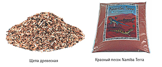 В качестве субстрата в террариуме можно использовать цветной песок Namiba Terra красного, желтого, оранжевого или коричневого цвета, близкий по своему химическому составу к природному песку Австралии. Цвет песка не принципиален. Убедитесь в качестве покупаемого песка, так как на рынке много подделок, в основе которых лежит измельченный красный кирпич или алеврит. Обе примеси очень пыльные и негативно скажутся на здоровье не только геккона, но и вашем. Алеврит может негативно повлиять на желудочно-кишечный тракт. Это тонкодисперсные минералы с преобладанием зерен кварца, слюды и глины, при намокании которых происходит цементирование и увеличение объема, последствия которого вполне предсказуемы. Можно использовать речной песок, предварительно просеяв и промыв его. Для влажных террариумов неплохо зарекомендовала себя смесь молотой сосновой коры, песка и кокосового торфа в брикетах в пропорции 1:1:0,3 по объему. Совсем недавно в магазинах появился отличный заменитель сосновой коры, который можно использовать в качестве грунта во влажных террариумах, – щепа для копчения разных пород деревьев. Это недорогой долговечный материал, хорошо поддерживающий влажность в террариуме.