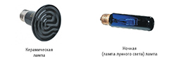 Керамические тепловые излучатели эффективно обеспечивают тепло в террариумах, не давая света. Их можно применять для круглосуточного обогрева, при этом необходимо использовать патрон под лампу согласно рекомендации производителя. При размещении в террариуме нужно изолировать его от свободного доступа животных так как этот тепловой излучатель достаточно сильно нагревается. При этом, керамические нагреватели применяют в отражателях, потому что у них тепловой поток не направлен. Керамические нагреватели выпускаются различной мощности, необходим тщательный подбор их к конкретному размеру террариума. Нельзя размещать керамический нагреватель мощностью 150 Вт в террариум размером 60 х 30 х 30 см, тем более без терморегулятора. Все расчеты получают путем экспериментов и многодневных замеров температуры на разных уровнях террариума при работающих нагревателях.