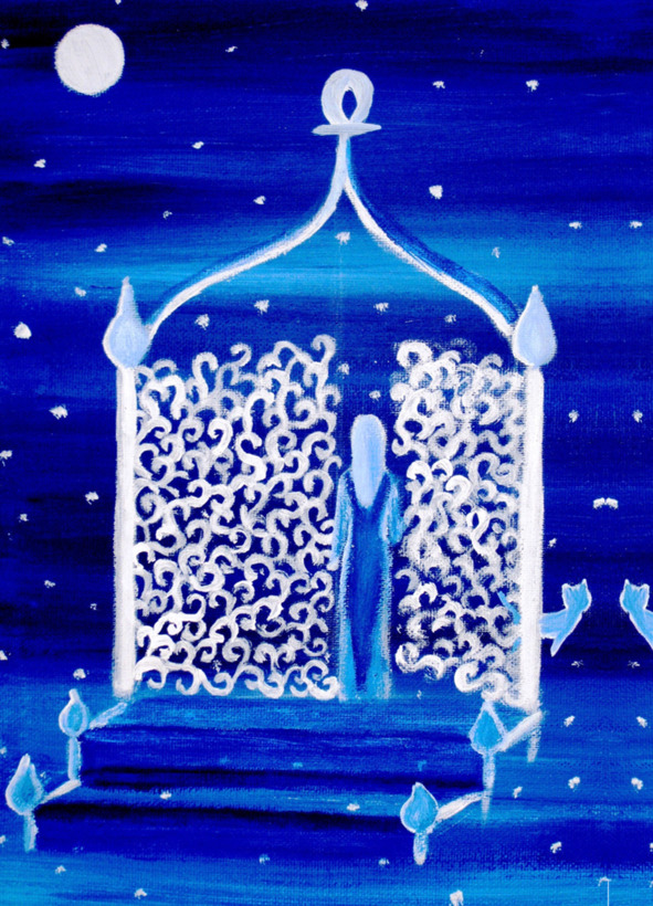 E.S.: The first edition of the book is illustrated with your paintings of the Girl with the Moon Cat. Were they painted after the book was written, as illustrations for the text?