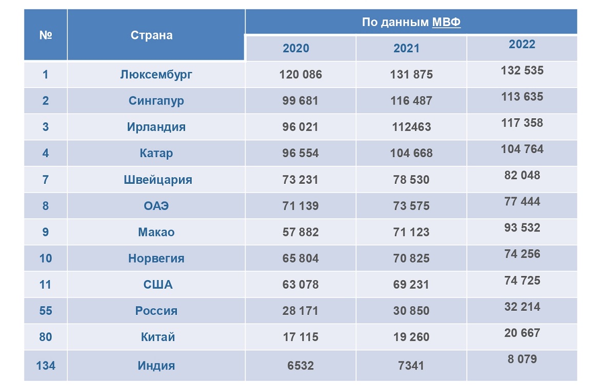 Таблица 2.7. Список богатейших стран по ВВП (ППС) на душу населения