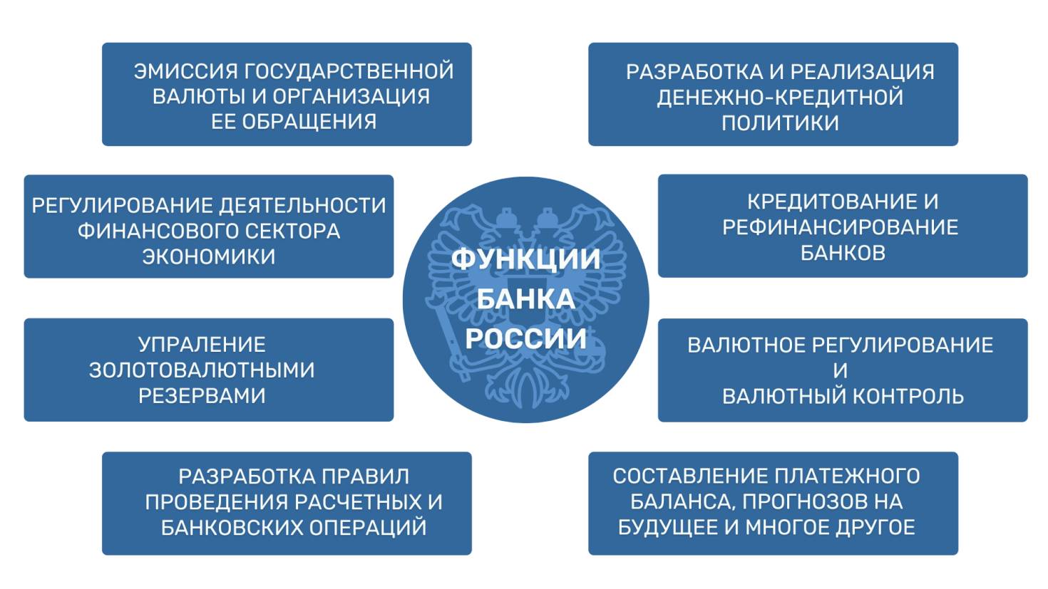 В Российской Федерации функции главной финансовой организации выполняет Банк России. Его основные цели – поддержание устойчивого курса национальной валюты, обеспечение стабильности финансовой системы страны и развития. Для достижения этих целей он наделён полномочиями: