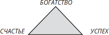 На вершине треугольника расположено БОГАТСТВО. Оно стоит на двух столпах, которые неразрывно с ним связаны: это СЧАСТЬЕ и УСПЕХ. Давайте рассмотрим каждое из этих состояний и поймем, что обуславливает его достижение.
