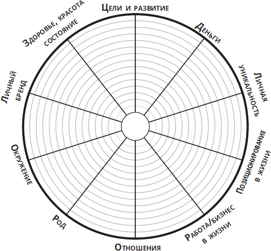 Перед вами картинка 10 сфер жизни человека и 10-балльная градация каждой из них. Ваше 1-е задание нарисовать себе такую же картинку и постараться объективно оценить, на сколько баллов вы ощущаете себя в каждой из сфер. Далее нужно обратиться к другому человеку из вашего окружения и попросить его оценить вас в каждой из этих сфер. Некоторые из вас на этом задании впервые в жизни соберут обратную связь о себе. И здесь подстерегает первая опасность: когда вы берете обратную связь о себе – не спорьте, не критикуйте, не обижайтесь на человека. Это то, как он вас видит, и это его полное право. Ваша же задача поблагодарить человека за объективность и сравнить с вашими результатами. Более чем уверен, результаты будут сильно разниться.