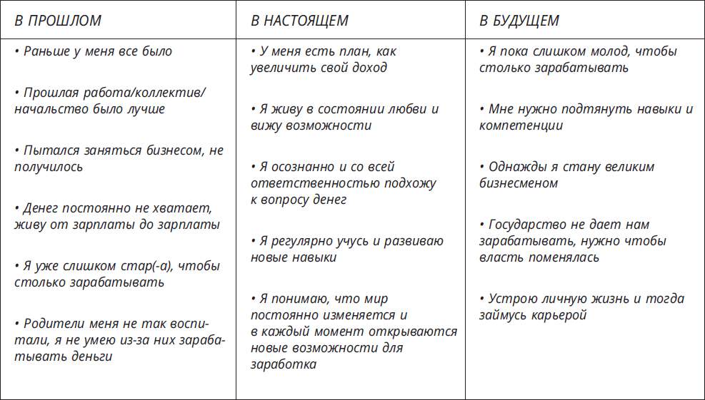 Об этом мы будем подробно говорить в книге и выполнять конкретные упражнения, чтобы научиться считывать такие состояния и возвращаться к жизни = к деньгам в моменте.