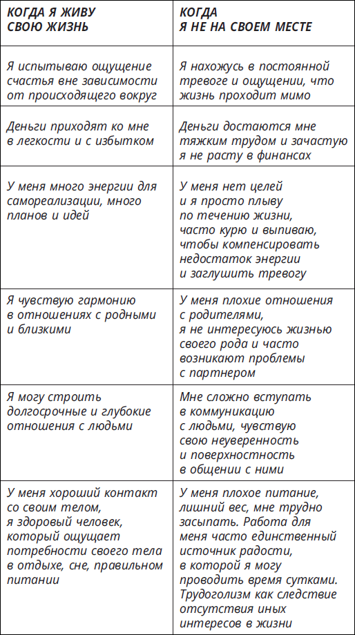 Ответ на вопрос выше простой, но для его осознания нужно отключить скепсис, критику и привычную вам логику. У них все получается, потому что они живут свою жизнь в соответствии со своими естественными интересами и ценностями. Жить свою жизнь – это огромная задача и вызов для каждого человека. Чтобы нагляднее понять, когда человек живет свою жизнь, а когда нет, предлагаю вам посмотреть на набор опций, который дает каждая из этих двух категорий: