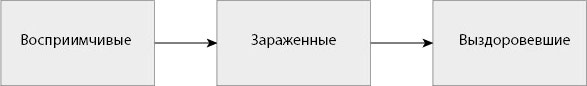 Как и Росс, Кермак и Маккендрик начали с разработки математической модели передачи болезни. Для простоты они предположили, что население перемешивается случайным образом. Подобно тому как это происходит при встряхивании камешков в сосуде, каждый человек в популяции обладает равными шансами встретиться с любым другим. В их модели эпидемия начиналась с определенного количества больных людей, а все остальные были восприимчивы к инфекции. После выздоровления человек приобретал иммунитет. Таким образом, всех людей в популяции можно разделить на три группы на основе их состояния: