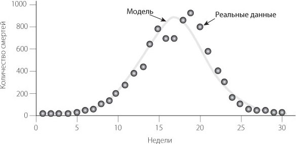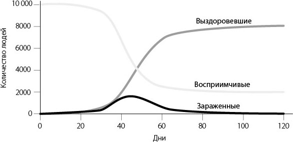 Кермак и Маккендрик развивали идеи Росса, пытаясь применить их к эпидемиям в целом. Они сосредоточились на одном из главных вопросов в изучении болезней: что приводит к окончанию эпидемии? В то время существовало два популярных объяснения. Либо передача инфекции прекращалась потому, что не оставалось восприимчивых к ней людей, либо по мере распространения эпидемии патоген становился менее заразным. Как выяснилось, в большинстве случаев оба объяснения неверны[42].