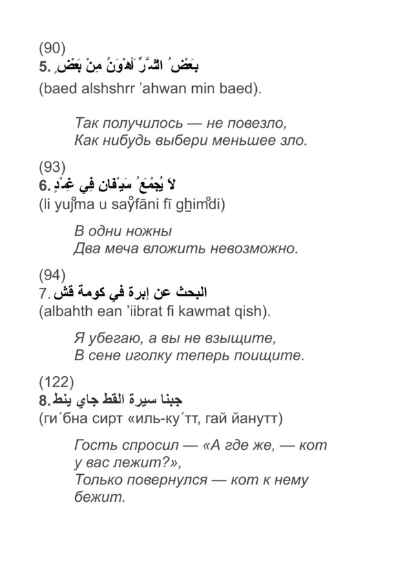 Мы б не встретились с бедой,Если б конь был не худой.(76)