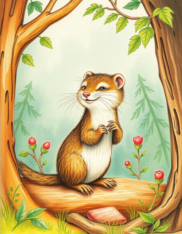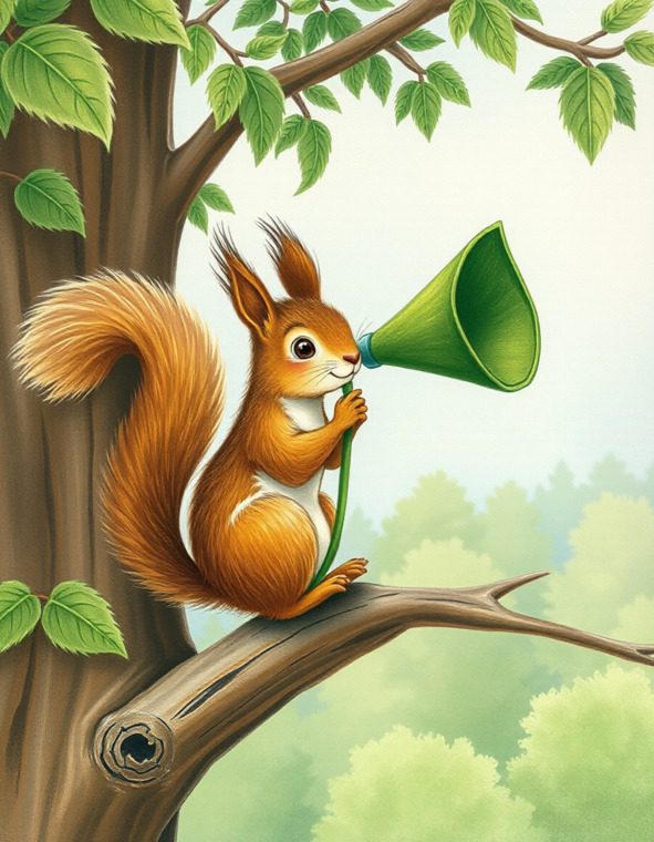 Каждое утро белочка по имени Злата просыпалась с восходом солнца. Она делала зарядку, бегая по веткам, завтракала вкусным орешком и отправлялась на прогулку по лесу. Но сегодня утро было особенным… Когда Злата забралась на самую высокую ель, чтобы полюбоваться лесом, она услышала странный звук. Это было похоже на плач, но очень тихий и слабый. Злата навострила ушки и начала искать, откуда доносится этот звук. Злата заглянула под большой лист лопуха и увидела… плачущий цветок! Он был очень красивый, с нежными лепестками, но из его серединки капали маленькие слезинки. Злата удивилась: разве цветы умеют плакать? Злата присела рядом с цветком и спросила: «Почему ты плачешь, красивый цветочек?» Цветок прошептал: «Мои пчелки-подружки улетели далеко-далеко и не вернулись. Теперь некому собирать мой сладкий нектар, и я чувствую себя очень одиноко.» Злата решила, что нужно найти потерявшихся пчелок. «Не грусти, цветочек», – сказала Злата. «Я отправлюсь на поиски твоих подружек! Я заберусь на самое высокое дерево и посмотрю, куда они улетели!» И Злата побежала к самой высокой ели, чтобы осмотреть окрестности. Забравшись на самую высокую ель, она стала прислушиваться.