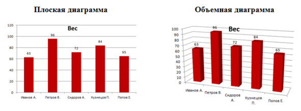 Объемные диаграммы выглядят эффектнее, но затрудняют проводить анализ и сравнение данных.
