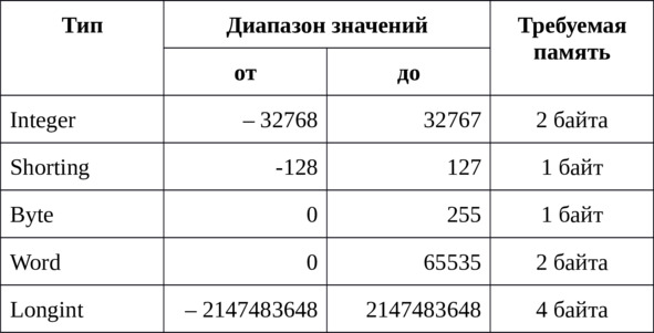 В зависимости от значения целые числа могут описываться другими типами, приведенными в таблице: