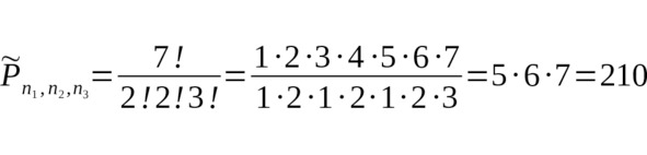 – Воспользуемся формулой для перестановок с повторением.. Значит, существует 210 вариантов перестановок.