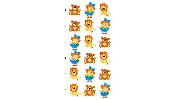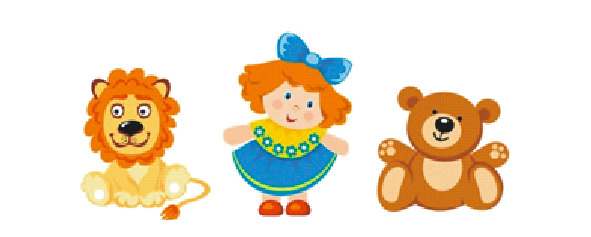 Однажды в выходной день Маша решила навести порядок в своих игрушках и рассадить в ряд медвежонка, куклу и львёнка.