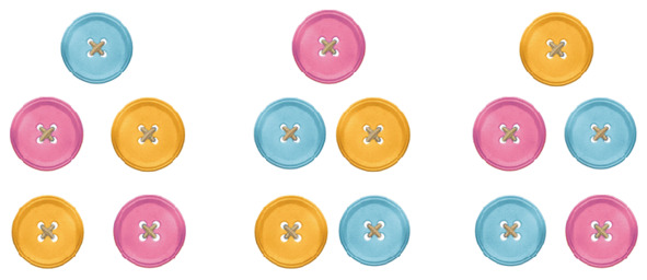 – А четвертого ряда не будет, – ответил папа. У нас три пуговицы, то есть три элемента множества, значит и рядов будет три. Осталось только, следуя сверху вниз, перечислить все варианты перестановок: