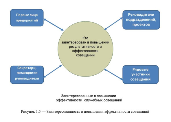 Есть ли в компании, на предприятии люди, заинтересованные в совершенствовании совещаний? Странный вопрос, безусловно, есть такие люди. Это в первую очередь, руководство компаний, их заместители, руководители подразделений, проектов, другие должностные лица, которые, по роду служебных обязанностей, регулярно проводят или участвуют в совещаниях (рис. 1.5).