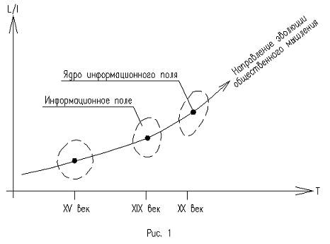 Составим из информационных полей художников (например, живописцев второй половины XIX в.) итоговое информационное поле. В прямоугольной системе координат по оси Y условно отобразим соотношение логической и образной составляющих (L/I) их мышления; по оси X – время (Т) создания художественных произведений (рис. 1).