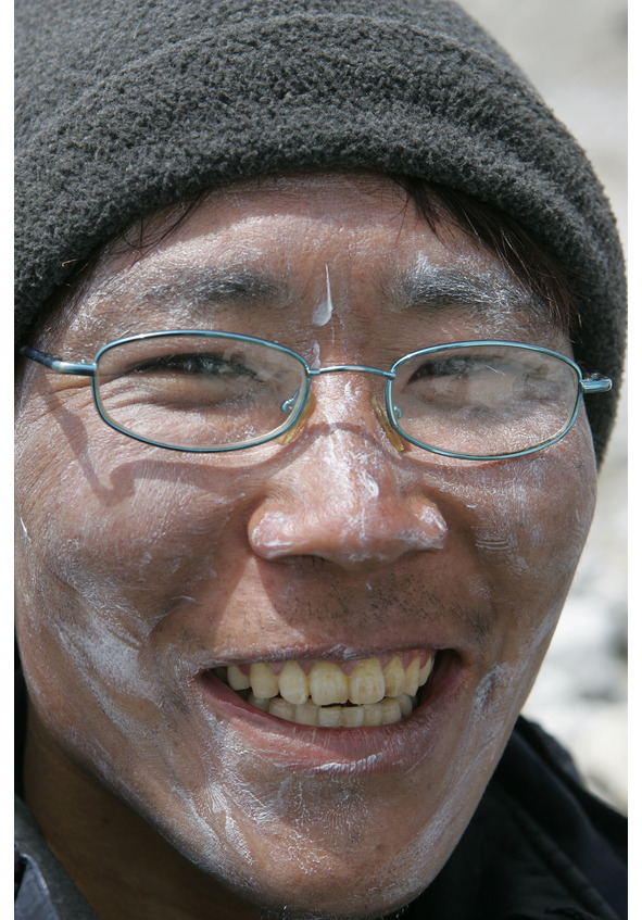 Ветровка «North Pole», ботинки «Salomon», шапочка, ковбойский платок от пыли, прямоугольные очочки, рост 160, рот до ушей – вот вам портрет Анг Нуру. Его настоящие глаза я увидел, когда на третий или четвертый день мы впервые подошли к тому месту, откуда можно увидеть вершину Эвереста. «Сагарматха…» – выдохнул проводник. Без понтов, с жалостью, с ненавистью, со всей силой своей шерпской естественности. У него на Сагарматхе погиб брат – провалился в замаскированную снегом ледяную пропасть. Теперь Нуру и ненавидит священную гору, и поклоняется ей.