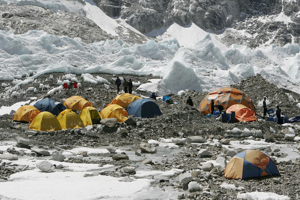 Жизнь базового лагеря похожа на обычную походную. Кто-то ставит палатки, кто-то готовит еду на всех, отдельная бригада копает яму для туалета, ведь жить в базовом придется долго. На подготовку снаряжения и акклиматизацию уходит по несколько месяцев…