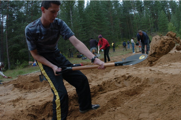 После горячего чая мне вручили бубен и отправили будить остальных «покойников». Звук бубна под землей чувствуется, как удар подушкой по голове. То тут, то там, как в «Возвращении живых мертвецов», из-под земли показываются руки. Бледные, засыпанные песком тела, вяло вылезающие из ям, дополняют впечатление. Жаль, нет профессиональной камеры, вполне можно снимать сиквел… А дальше – каждый сам по себе: паренек из Мурманска сел у сосны и жестами, как комаров, отгонял назойливых журналистов. Он не вообще не желал говорить, а думал о своем. Девушка из Москвы впала в истерику и часа полтора рыдала в голос. Ей за время лежания под землей пришла в голову здравая мысль – помириться с матерью. Челябинца, к слову сказать, я так и не дождался. Он был на семинаре во второй раз и, судя по словам организаторов, собирался пробыть в яме всю ночь. Что касается меня, то в истерику я не впадал и не ощущал, как «черный осьминог вытягивает из моего тела щупальца по одному», как одна впечатлительная дама из Москвы. Честно говоря, главной задачей было – написать статью о людях, которые идут на психотренинг, чтобы избавиться от каких-то личных проблем. Поэтому я прислушивался больше не к внутренним ощущениям, а фиксировал происходящее снаружи. И главный вывод «Похорон воина», сделанный мной, вынесен в заголовок статьи. Наверное, это обычная журналистская толстокожесть. А может быть, просто проблем нет. Мне в могиле понравилось: тихо, прохладно, и мухи не кусают. Но я не стал бы советовать вам самокопание как лучшее средство избавления от жары, впрочем, как вариант может подойти. Главное – не курите в могиле…