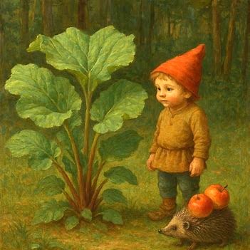 Вовсе нет. Маленький Гном в перерывах между дождями успел познакомиться с Белкой, которая угостила его орехами из своей кладовой, расположенной высоко в дупле старого дуба. Белка приглашала Гномика спрятаться в этом дупле от дождя, но малыш ещё не научился так высоко лазать по деревьям. На следующий день он пошёл гулять по лесу и попал в настоящий малинник. Маленький Гном, конечно, исцарапался, но ягод наелся вволю. А прошлым утром, вздремнув под своим лопухом, малыш проснулся от какого-то пыхтения и шуршания. Открыв с опаской глаза, Гномик увидел старого Ежа, который с трудом вёз на своей спине два больших яблока.