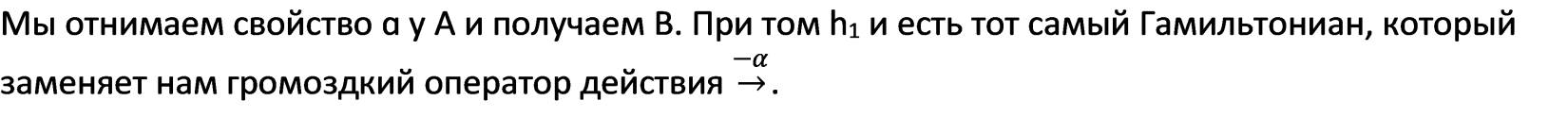 Оператор h выражает изменение предстоящего объекта при преобразовании к последующему, изменение качеств первого объекта, становящегося вторым. Т.е.: