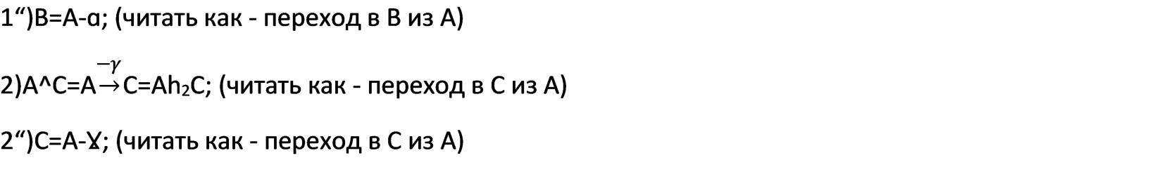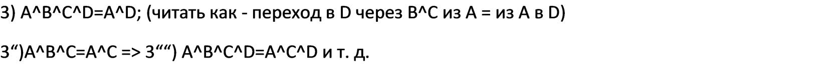 Пусть есть некоторые природные процессы преобразования первого объекта во второй. Обозначать их мы будем так: A^B, B^C, C^D, A^C, A^D, B^D.