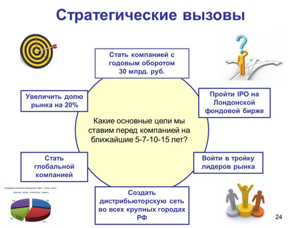 В раздел «Стратегические вызовы» мы включаем наиболее важные и амбициозные цели компании. Эти цели должны вдохновлять и захватывать дух, но они должны быть достижимы (рис. 24).