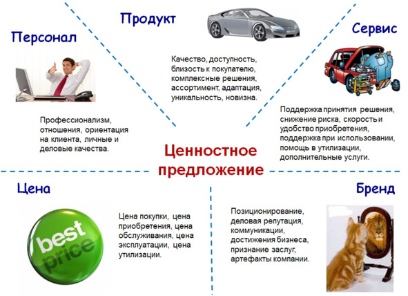 ВО-ПЕРВЫХ, это характеристики самого продукта или услуги. К ним относятся качество, доступность, близость к покупателю, комплексные решения, ассортимент, адаптация, уникальность и новизна.