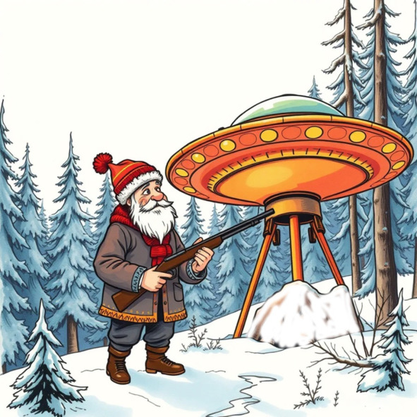 На Новый год дело и случилось. Снабдил Кузьмич всех постоянных покупателей «бурбоном», сам принял стакан, другой. Тут, стал быть, Президент, куранты, все дела. Встал Кузьмич, гимн прослушал, да и «тут же выпил», как Ерофеев писал. Слышит, вроде как звон в стекло оконное, будто снежком засветили. Подумал, что асоциальные дети, одичавшие стервецы: они тогда в стайки сбивались, но не просто озорничали, а уходили в лес грибы и жёлуди искать, хрюкали, мяукали, лаяли «обло и озорно» да на людей, стал быть, нападали. Дом его в аккурат на краю деревни стоял, лес неподалёку начинался. Взял Кузьмич ружьё, выскочил во двор. Смотрит и глазам своим не верит: стоит во дворе на свежем снегу металлическое блюдце. А снег вокруг не примят, ни следочка. Стал быть, с неба упало. Почесал Кузьмич затылок, да и захрустел снегом к несанкционированному предмету. Подошёл, стволом постучал. Звон металлический слышен, стал быть, не видение алкогольное. Тут в блюдце навроде двери отверстие протаяло, да Кузьмича вовнутрь и затянуло непонятной силой. Кузьмич аж ружье от неожиданности выронил. Сидит в блюдце за столом зелёный человечек в очках, пиджаке и с галстуком, бумаги на столе перебирает, на монитор косится.