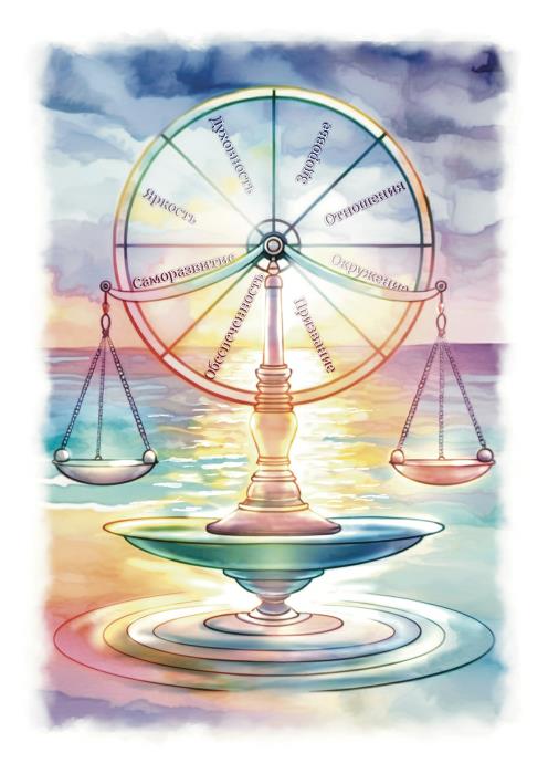 В этом нам может помочь «Колесо баланса жизни» – методика, которая позволяет проанализировать различные сферы жизни, чтобы остановиться, проснуться, оглянуться и подумать, не слишком ли мы сфокусированы на одной сфере, забывая о других, тем самым нарушая хрупкий баланс.