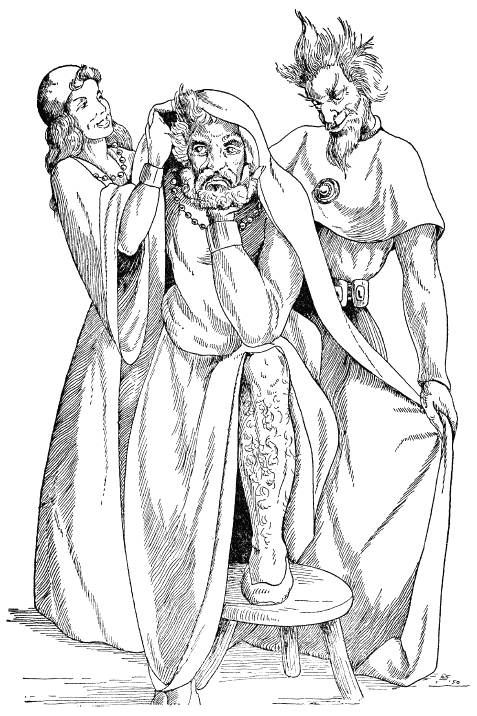 В стране эльфов Фрейр сидел в своем замке и горевал. Его подданные – легкие эльфы, которые помогали созревать зерну и плодам, – тоже грустили. Плохое время пришло на землю. Коровы не давали молока, телята умирали, пищи для людей и зверей не хватало. Отец всего мира Один грустно смотрел с высоты своего престола, и бесплодная земля простиралась перед его взором. Два верных ворона, облетавших каждый день землю, вернулись и прошептали ему на ухо обо всем, что увидели. Пока бог слушал, лицо его все больше мрачнело. Наконец он решил держать совет с богом ветра Ньёрдом, который был отцом Фрейра.