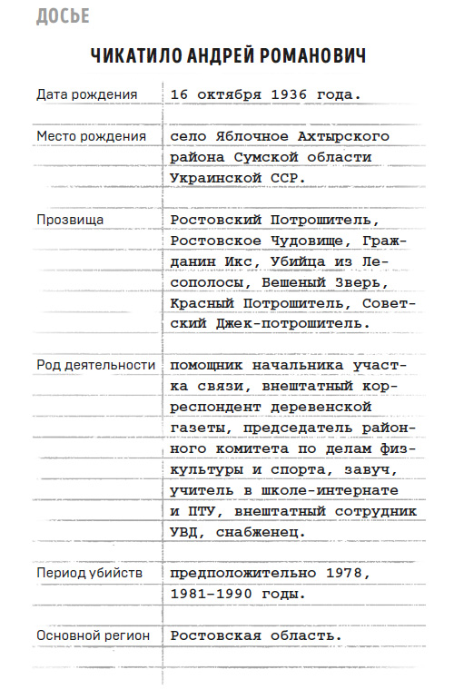 Казалось бы, о Ростовском Потрошителе известно абсолютно все до мельчайших подробностей. Несмотря на это, грозный образ маньяка по-прежнему окутан гипнотической тайной, которую хочется разгадывать снова и снова.