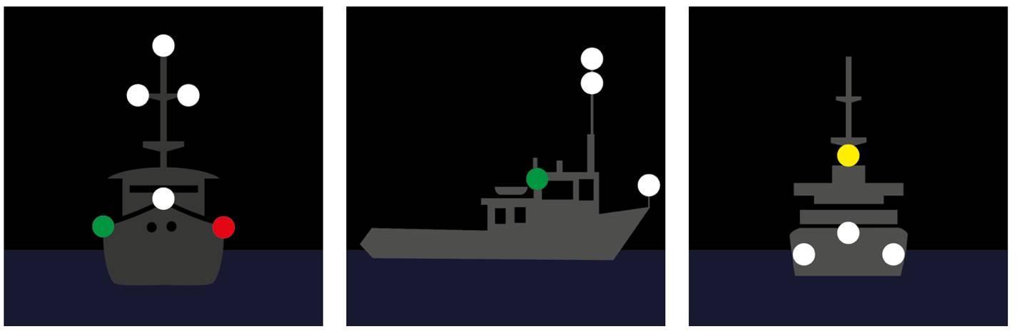 Несамоходное судно, буксируемое под бортом, должно нести один белый топовый огонь в носовой части и один кормовой огонь.