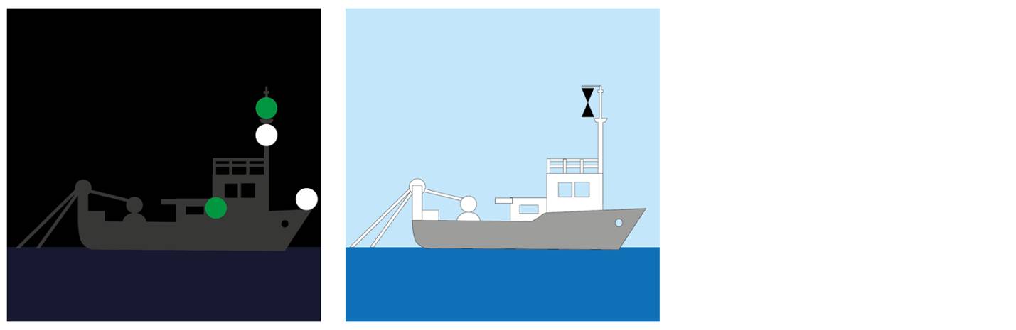 58. Судно, занятое ловом рыбы, протаскивающее траловую сеть или другое орудие лова, которое ограничивает его маневренность, должно нести: