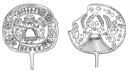 Рис. 4. Бронзовые вотивные булавки. Сурх-Дум. VIII–VII в. до н. э. Диаметры – около 3 дюймов.