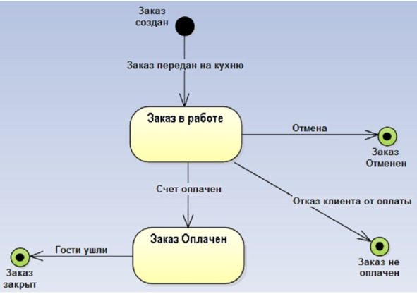 Рис. 1.18. Диаграмма «Машина состояний UML для класса „Заказ“ после объединения с картотекой „Оплата заказа“»