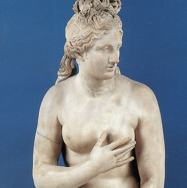 Никто не может избежать ее власти, даже боги. Только Афина, Гестия и Артемида не подчинены ее могуществу. Высокая, стройная, с нежными чертами лица, с мягкой волной золотых волос, как венец лежащих на ее прекрасной голове, Афродита – олицетворение красоты и вечной юности. Когда она идет в блеске своей красоты, в благоухающих одеждах, тогда ярче светит солнце, пышнее цветут цветы. Дикие лесные звери бегут к ней из чащи леса; к ней стаями слетаются птицы. Львы, пантеры, барсы и медведи кротко ласкаются к ней. Спокойно идет среди диких зверей Афродита, гордая своей лучезарной красотой. Ее спутницы оры и хариты, богини красоты и грации, прислуживают ей. Они одевают богиню в роскошные одежды, причесывают ее золотые волосы, венчают ее голову сверкающей диадемой.