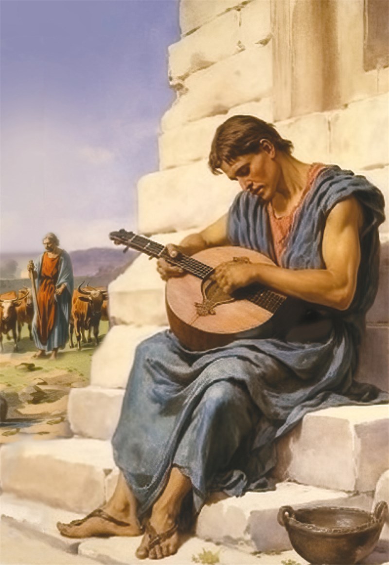 С Олимпа повел Гермес Аполлона в Пилос, захватив по дороге сделанную им из щита черепахи лиру. В Пилосе он показал, где спрятаны коровы. Пока Аполлон выгонял коров из пещеры, Гермес сел около нее на камне и заиграл на лире. Дивные звуки огласили долину и песчаный берег моря. Изумленный Аполлон с восторгом слушал игру Гермеса. Он отдал Гермесу за его лиру коров – так пленили его звуки лиры. А Гермес изобрел себе свирель, любимый музыкальный инструмент пастухов Греции.