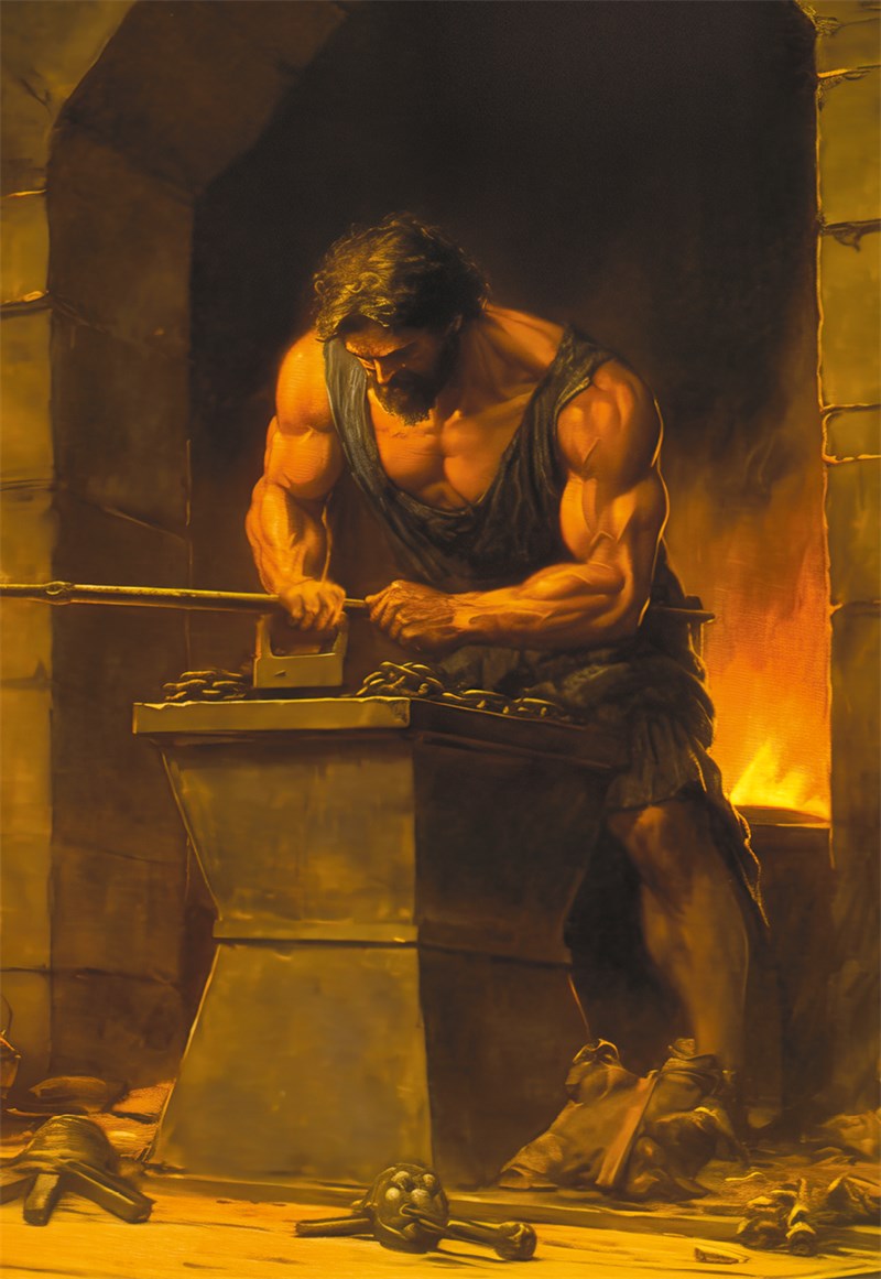 Но бог Гефест может быть и грозным. Многие испытали силу его огня и страшные, могучие удары его огромного молота. Даже волны бушующих рек Ксанфа и Симоиса смирил под Троей своим огнем Гефест. Грозный, разил он молотом и могучих гигантов.