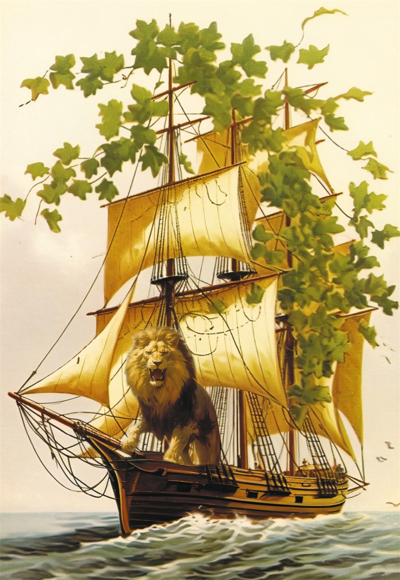 Подняли разбойники паруса, и корабль вышел в открытое море. Вдруг совершилось чудо: по кораблю заструилось благовонное вино, и весь воздух наполнился благоуханием. Разбойники оцепенели от изумления. Но вот на парусах зазеленели виноградные лозы с тяжелыми гроздьями, темно-зеленый плющ обвил мачту, всюду появились прекрасные плоды, уключины весел обвили гирлянды цветов. Испуганные разбойники стали молить мудрого кормчего править скорее к берегу. Но поздно! Юноша превратился в льва и с грозным рыканьем встал на палубе, яростно сверкая глазами. На палубе корабля появилась косматая медведица, страшно оскалила она свою пасть. В ужасе бросились разбойники на корму и столпились вокруг кормчего. Громадным прыжком лев бросился на капитана и растерзал его.