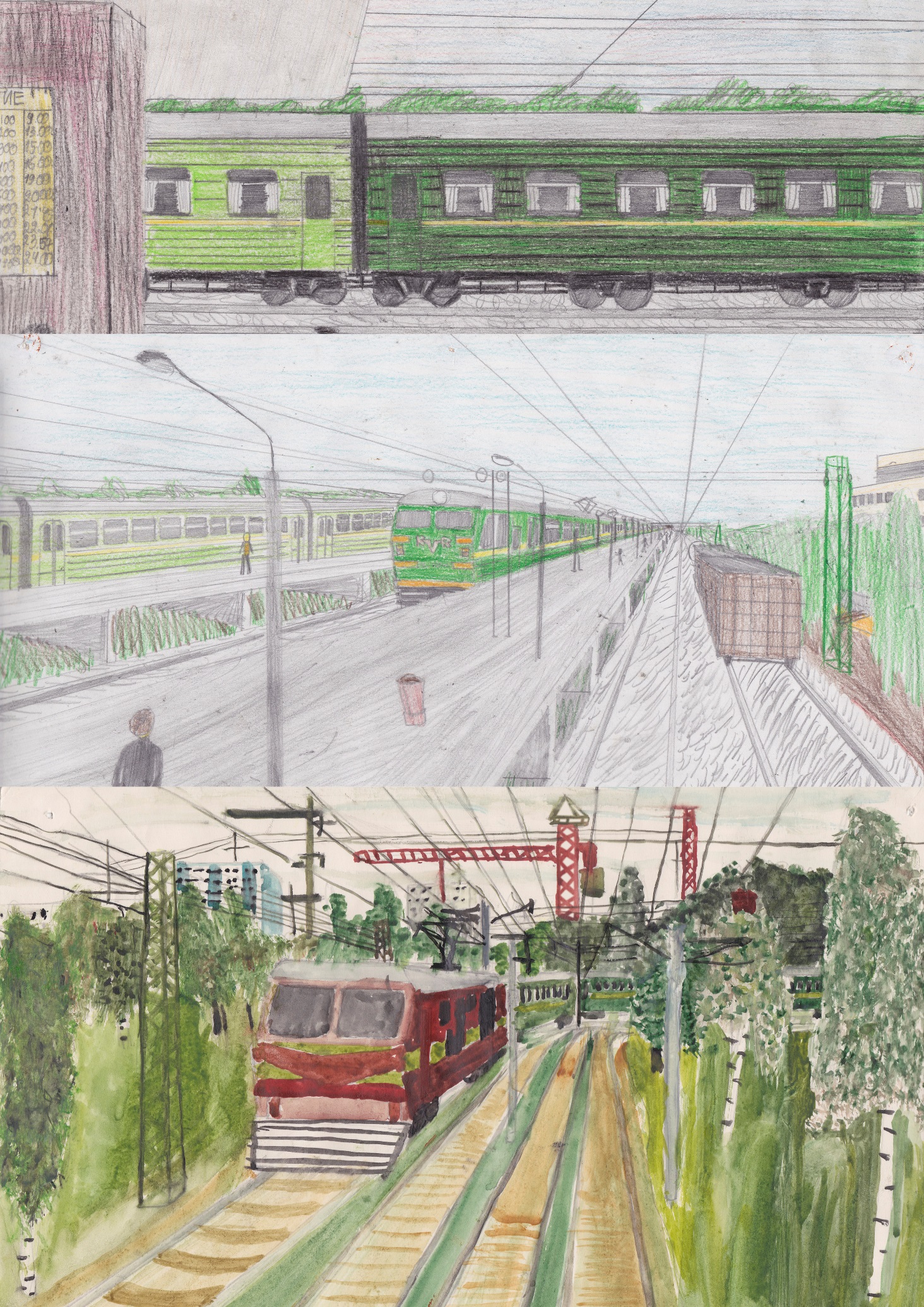 Лето 2002 (12 лет). Городской лагерь другой школы на первом её этаже и во дворе, в ста метрах от своего дома. Когда все играют и общаются, бумага и инструменты принесены с собой, расположившись на виду на одной из поставленных вплотную друг к другу парт. Стоìит выйти в туалет или передохнуть на улицу, по возвращению обнаруживается пропажа инструментов, или что хуже – порча сделанной работы. Один за другим выбегают во двор: «Там твою электричку сломали».
