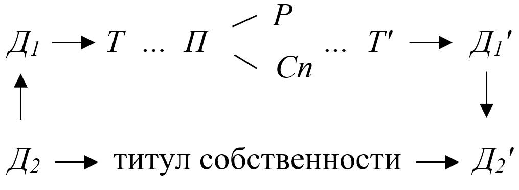 Капитал, задействованный на капиталистическом предприятии, мы называем реальным капиталом. По существу, реальный капитал – это и есть действующее капиталистическое предприятие. Иными словами, реальный капитал – это капиталистическое производственное действие и его результат. Процесс кругооборота реального капитала проходит через три стадии, включающие в себя денежный капитал Д, товарный капитал Т и производительный капитал П. Как и Маркс, мы разделяем производительный капитал на постоянный и переменный – постольку, поскольку постоянный капитал c превращается в средства производства Сп, а переменный капитал v – в живую деятельную силу Р.