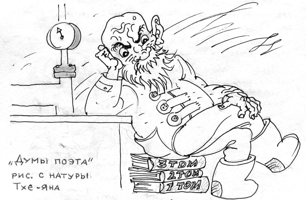 В институте на лекциях я иногда рисовал для развлечения всякие несерьёзные картинки. Так же коротали время мои однокурсники: Рамиль Латыпов, Алексей Нурмухаметов, Риф Шарифуллин. А главное, нам повезло учиться вместе Михаилом Копьёвым. Он мог за пять минут нарисовать не только шарж с несомненным сходством, но и сочинить многофигурную композицию с уморительными персонажами. Ему не надо было позировать. Он помнил наизусть внешность всех своих знакомых и всех известных исторических деятелей.