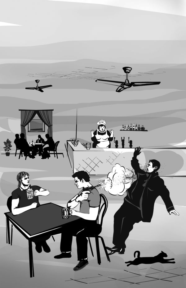 Том почувствовал себя по-идиотски. Драка проходила вокруг него, рядом мельтешили руки, трещали футболки, а он стоял в самом ее центре, не принося никакой пользы. Он ринулся к обидчику Моси, бледному невысокому парню средней комплекции. Тот уже сгруппировался и стоял в бойцовской позе, с ненавистью смотря на Тома. Том успел отбить ладонью его кулак, и, пользуясь длиной рук, стал молотить его в голову, в руки, – куда дотягивался, сбоку и снизу, попадая и не попадая, надеясь не столько на силу, сколько на скорость и количество ударов. Тот отвечал, отворачивался, пригибался, как мог, закрывая лицо, ожидая, когда Том выдохнется. Но, пропустив подряд несколько неприятных ударов, внезапно всадил Тому ногой в печень. Удар прошелся вскользь, в поясницу. Могло быть и хуже, стой Том чуть подальше от Бледного. Тяжело дыша, он отскочил, заметив краем глаза, что местные явно сдают. Это придало сил. Мир превратился в багровый пульсирующий тоннель, в центре которого плыло круглое лицо врага. Бледный шмыгнул кровью, быстро вытер нос. «Достал!» – мелькнуло в голове. Том вновь подскочил к нему. Тот явно выдохся, и снова попытался повторить свой удачный удар, но Том на этот раз был начеку, и легко поймал его за ногу.