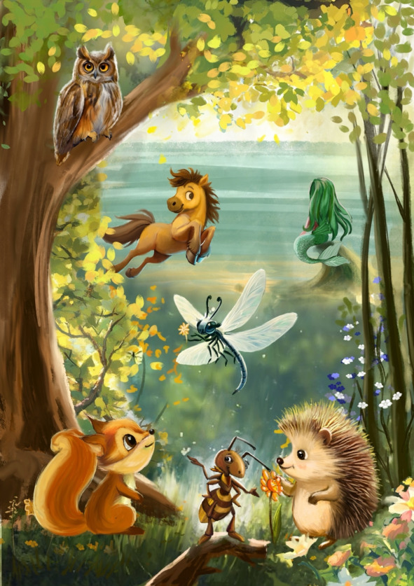 У Совы есть конкурент – сказочная Русалка, живущая в морской пучине. Русалка редко выбирается на сушу. Она большую часть времени проводит в воде, играет с рыбками и морскими звёздами, водит хороводы с медузами, поёт песни нежным голосом. Казалось бы, Русалка совсем беззаботна и легкомысленна. К ней в гости часто прилетает Стрекоза и нашёптывает свои секреты и мечты. Но в Русалке живёт внутренняя волшебница, которая видит вещие сны и умеет давать мудрые советы.