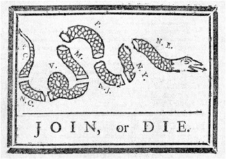 «Объединимся или умрем». Карикатура Бенджамина Франклина. 1754 год