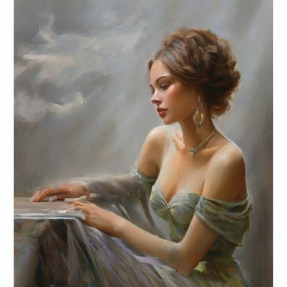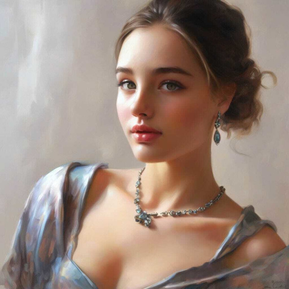 Второй том. Портреты девушек и женщин. Эстетика красоты женских лиц. Все работы этого тома выполнены в едином стиле. Классические платья, украшения, укладка волос.