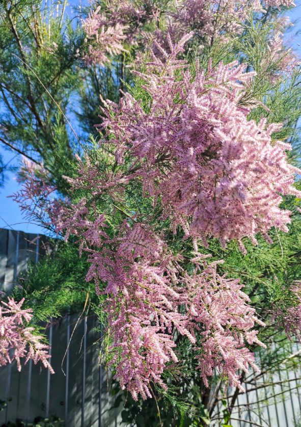 Где только не увидишь нынче Тамариксы! Их высаживают даже в холодной 4-й зоне. Но это еще и целебные растения. Tamarix aphylla. Листья 1 стакан отвара с 2 ложками мёда один раз в день. Отвар, если дизентерия, кашель.
